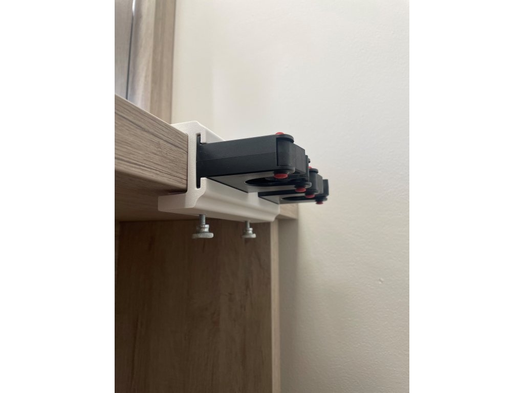 Jednoduchá instalace: Snadno upevnitelné bez nutnosti nářadí – držák se přichytí k desce pomocí pružinového mechanismu nebo šroubovací svorky.