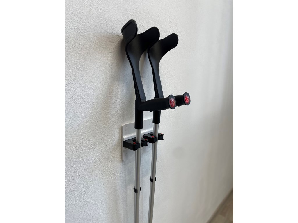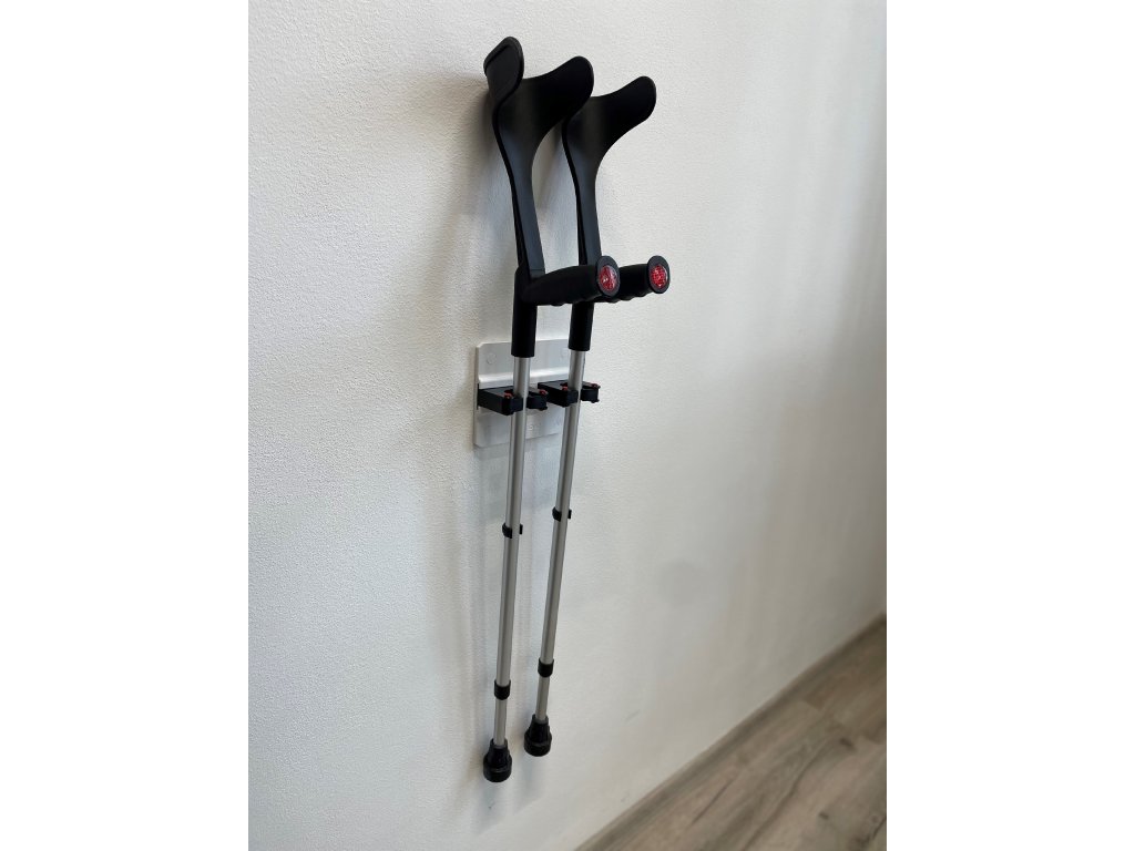 Bezpečné uchycení: Berle zůstávají stabilně uchycené v držáku bez rizika sklouznutí či pádu.