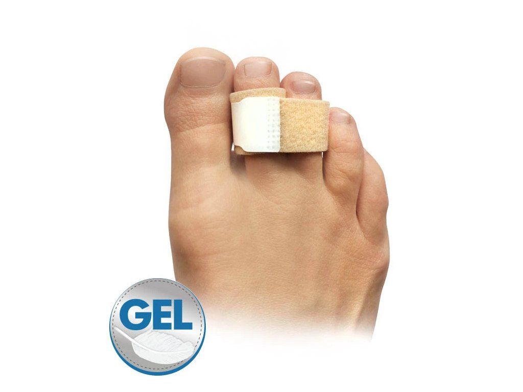 Jemný textilní proužek se suchým zipem a gelovým vyměkčením. K pevné fixaci dvou prstů.